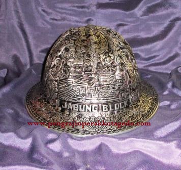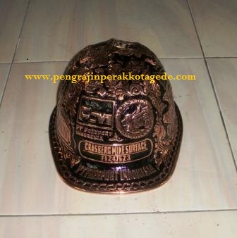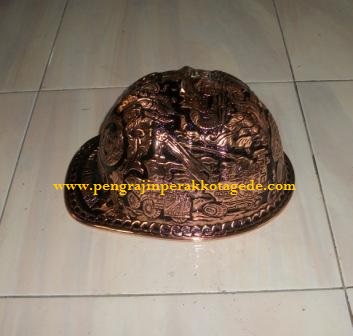 HELM UKIR , bahan tembaga ( bentuk helm proyek : dari depan, kiri, kanan, belakang )